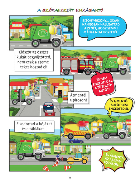1. A szórakozott kukásautó: A kukásautó zenét hallgat, nem figyel oda a szemét begyűjtése közben, amivel nagy galibát okoz. Vajon sikerül helyrehozni a hibáit?
